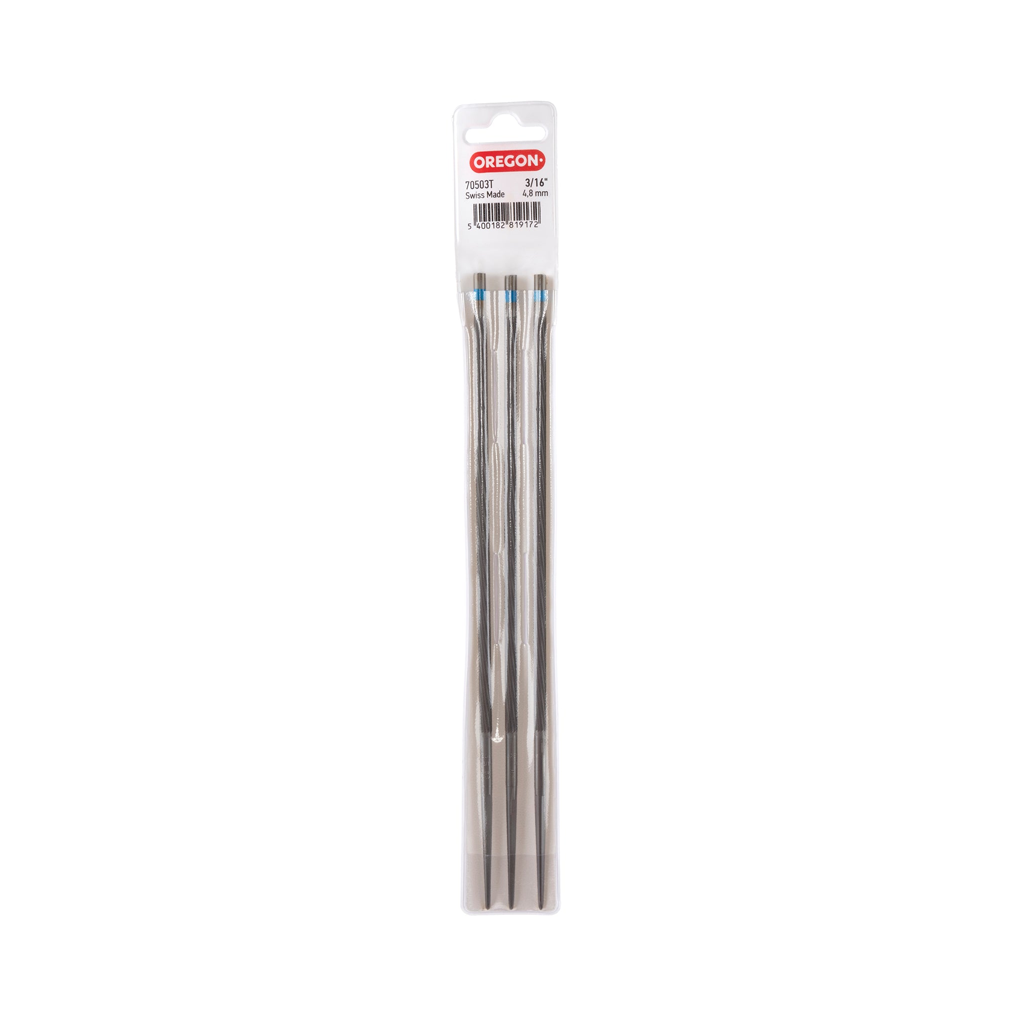 - A dozen 3/16" (4.8 mm) diameter saw chain files packed in 4 vinyl packs with 3 files each for protection