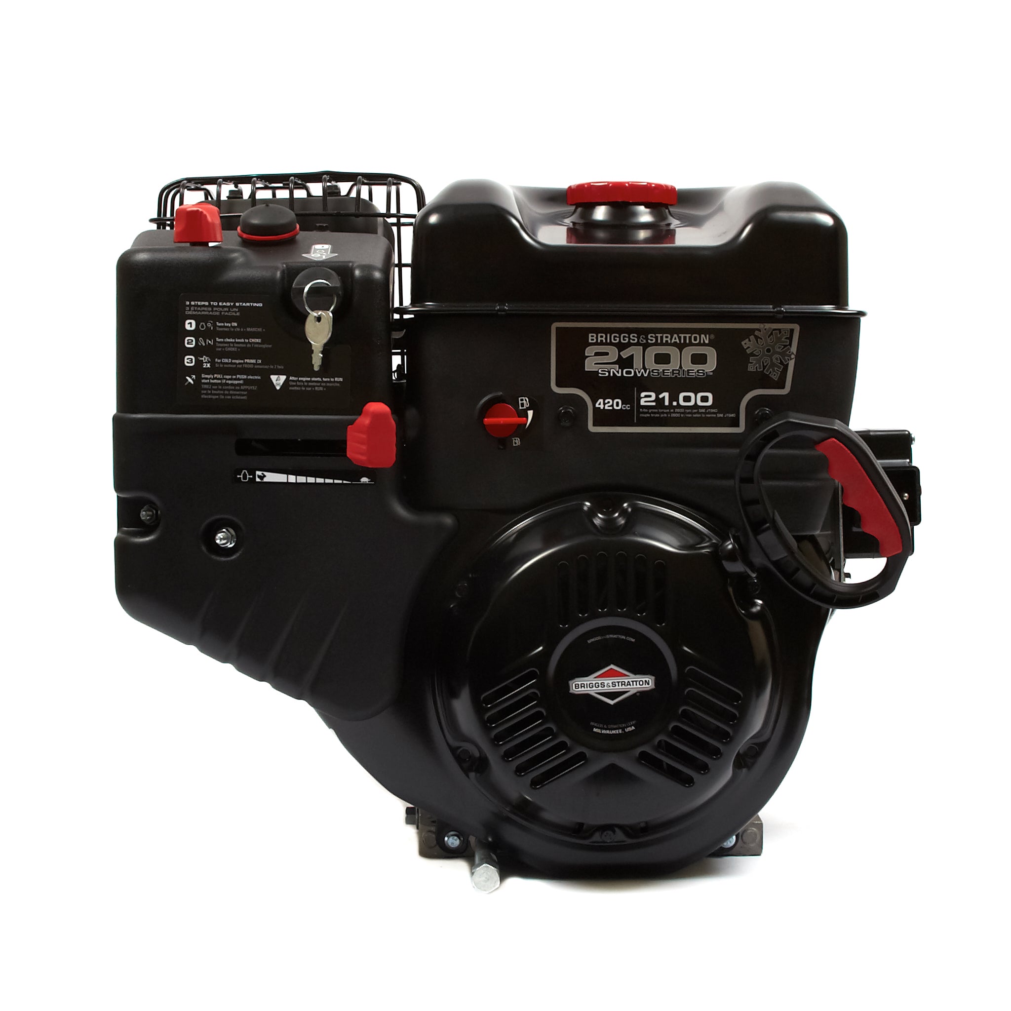 This genuine 420cc Briggs & Stratton single cylinder engines are specially designed to provide more power for quick and easy removal of all types of snow. With a power rating of 21 ft lbs of gross torque, this engine features a recoil starter plus a 110 volt Electric starter and Maintenance-free Magnetron electronic ignition. With a manufacturer limited warranty of 2 years consumer use / 90 days commercial use, Briggs & Stratton provides power that you can trust. This engine includes an installed muffler and a fuel tank Many parts look similar, so it’s crucial to ensure you’re choosing the right replacement for your original equipment or engine model. Not sure? Use our Parts Lookup Tool to view part diagrams and find the correct replacement.