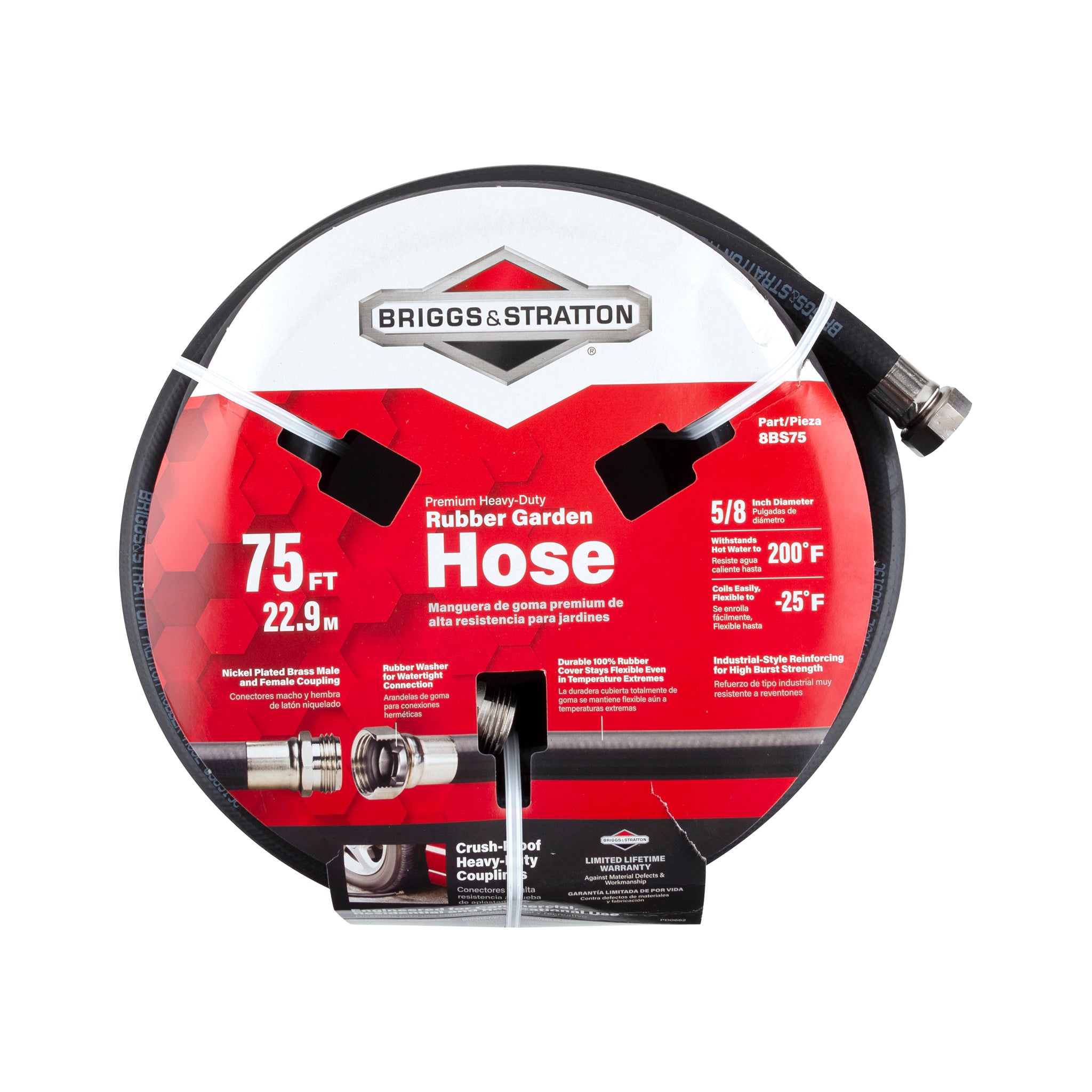 - This hose is 75 feet long, providing a good balance between reach and manageability. It's suitable for medium to large-sized gardens and typical residential watering needs