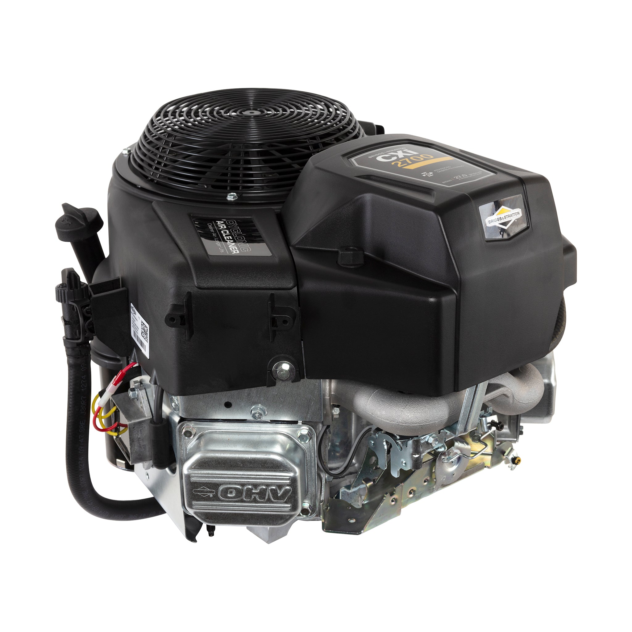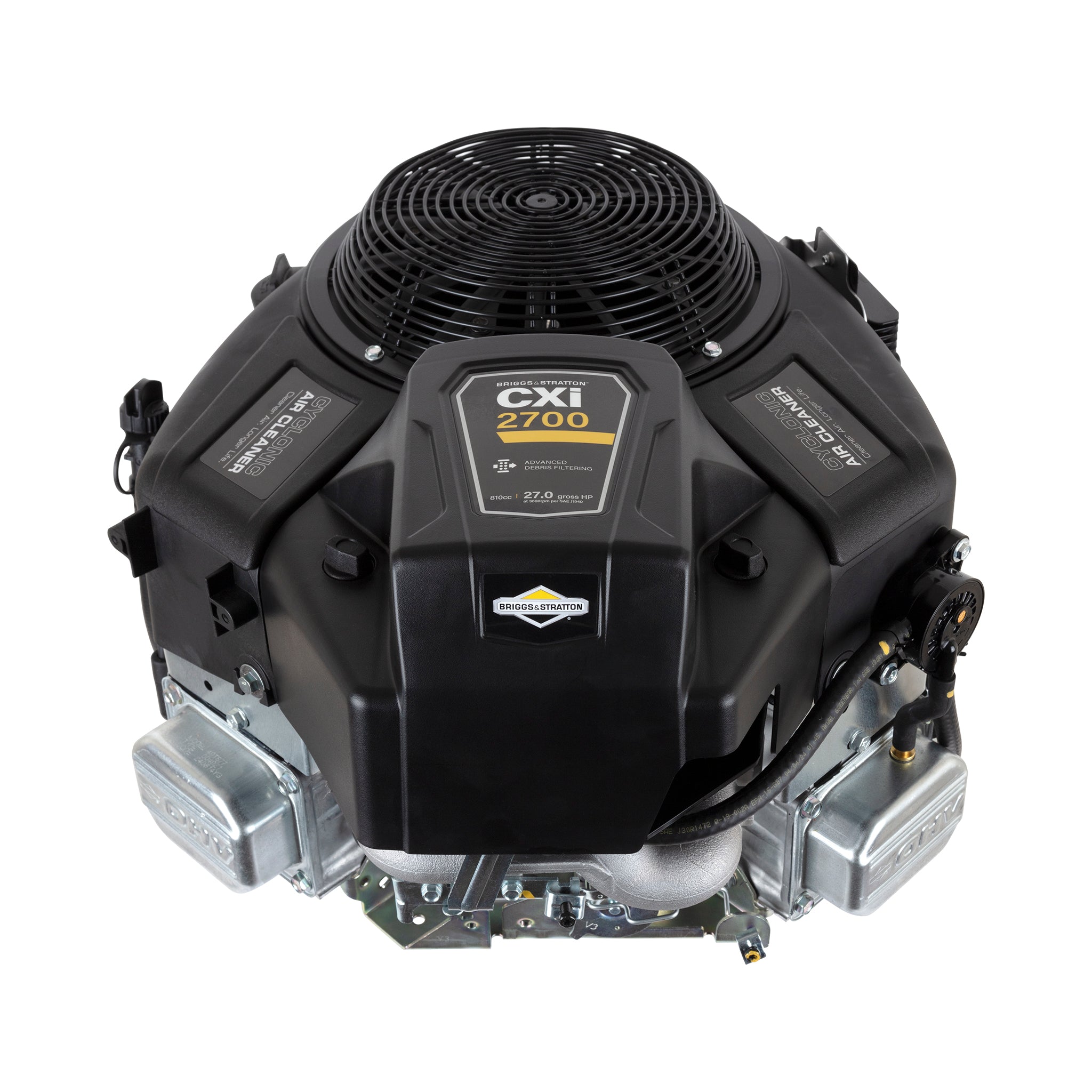 - Cyclonic air filter provides ultimate debris protection and lasts 2X longer than panel-style air cleaner systems
